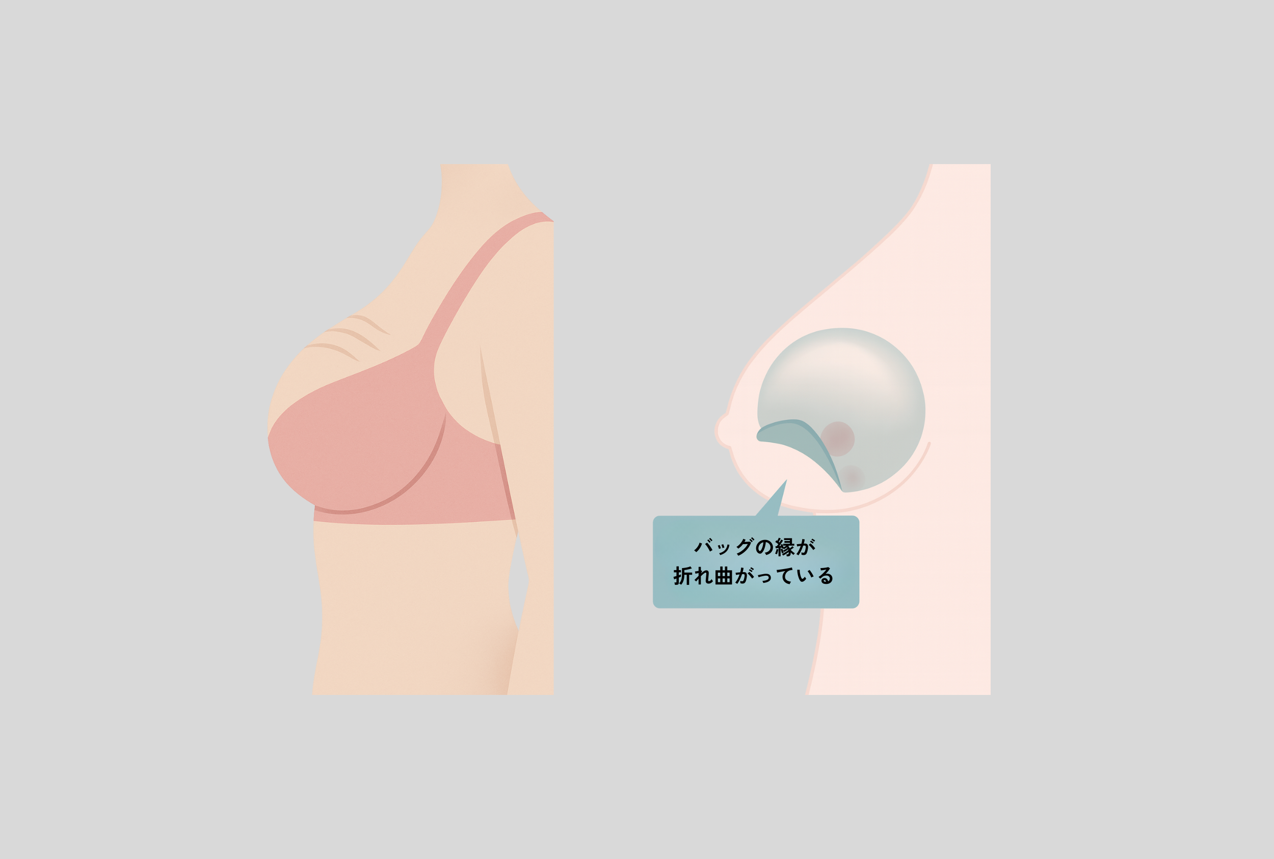 シリコンバッグが身体の中で折れ曲がり、表面に波打つような変形が出る状態を指します。
