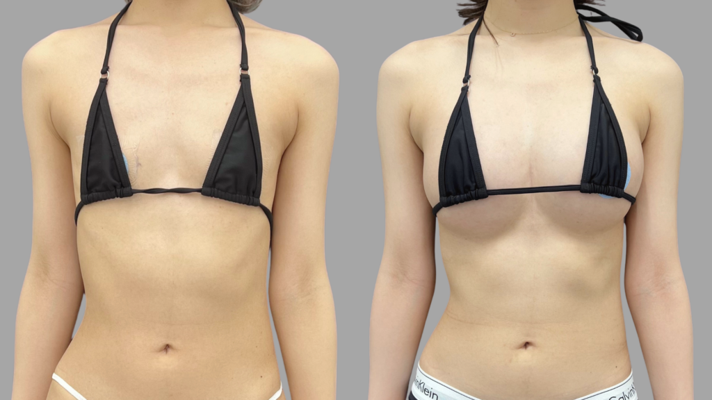 また、脂肪豊胸はしこりの生成を避ける為に、1回で無理にボリュームを出すのではなく、時には複数回に分けて施術を行うことで、定着率を高めるながら理想のバストに近づけていく治療としてご提案する場合があります。特にAAカップなど元のバストボリュームが少ない方でも、段階な施術により、自然で安定したバスト形成が可能です。